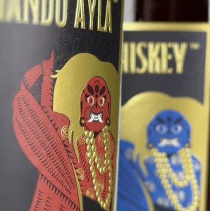 KATHMANDU AYLA and MASALA WHISKEY feature an interpreted image of the Lakhey, the guardian spirit central to the Indra Jatra festival, a symbol of protection and celebration.